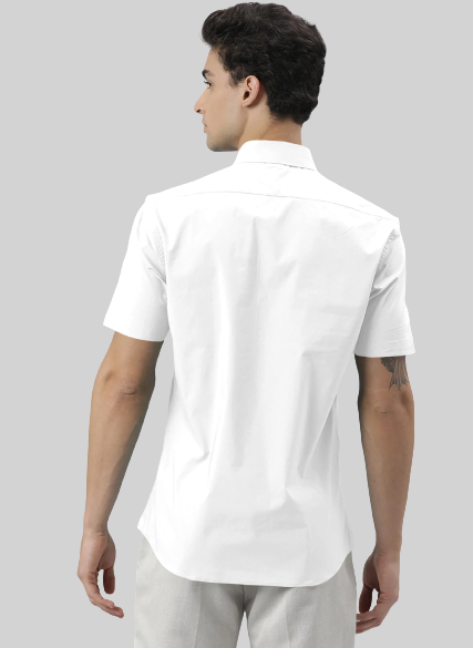 Men's Solid Slim Fit Cotton Half Sleeves White Shirt
