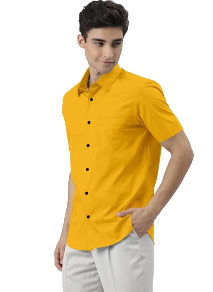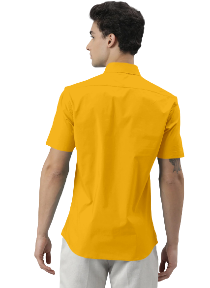 Men's Solid Slim Fit Cotton Half Sleeves Yellow Shirt