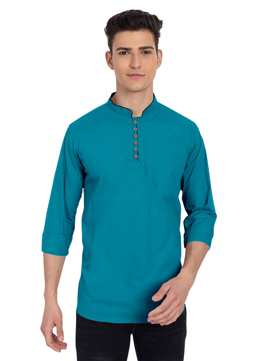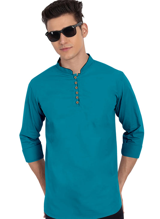 Men's Solid Stylish Plain Design Slim Fit Blue Cotton Kurta