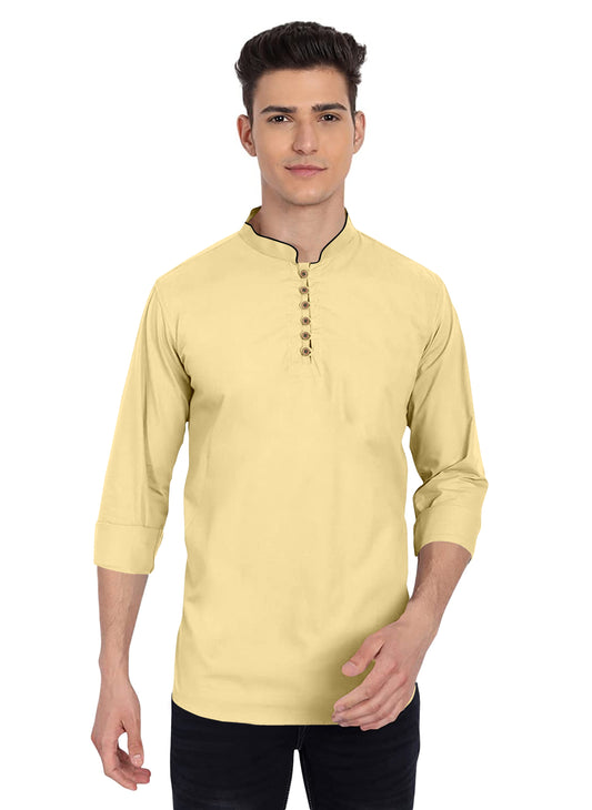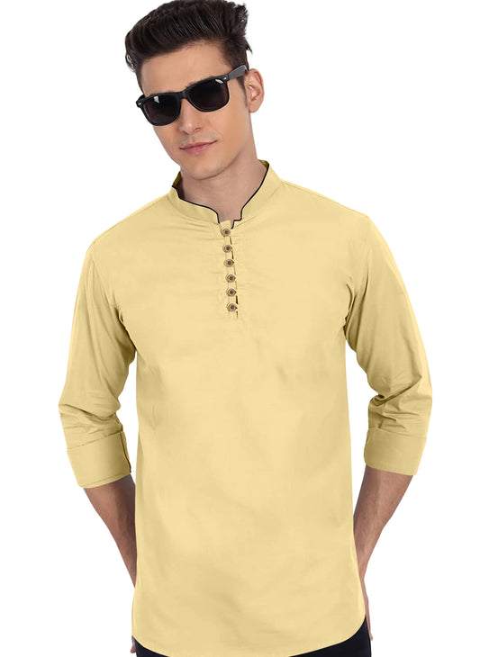Men's Solid Stylish Plain Design Slim Fit Beige Cotton Kurta