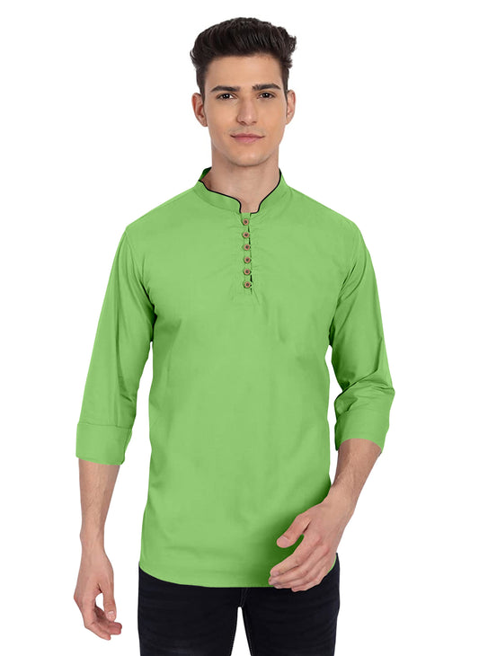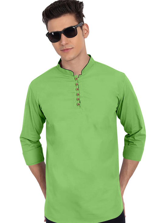 Men's Solid Stylish Plain Design Slim Fit Dark Green Cotton Kurta