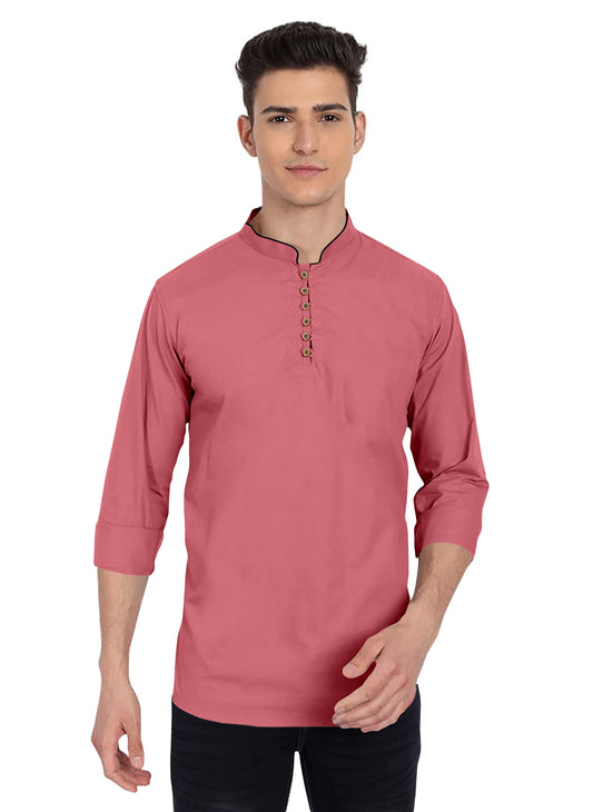 Men's Solid Stylish Plain Design Slim Fit Dark Pink Cotton Kurta