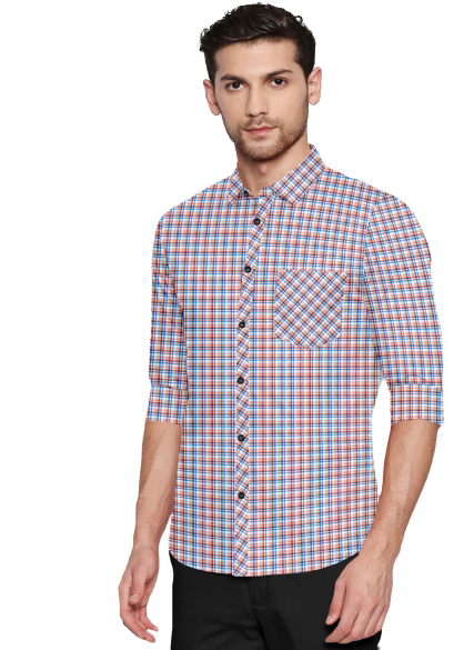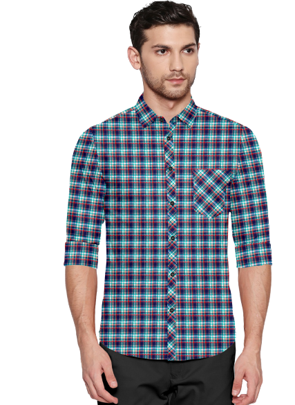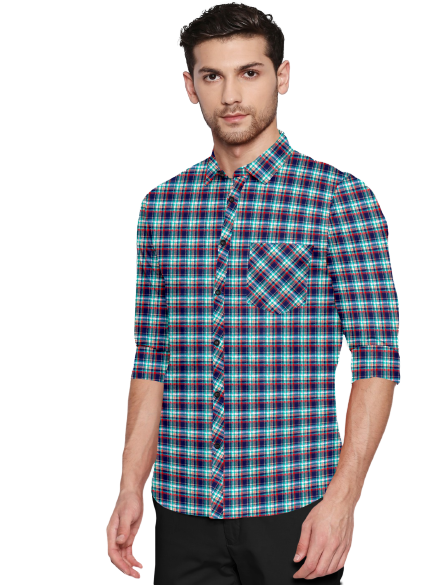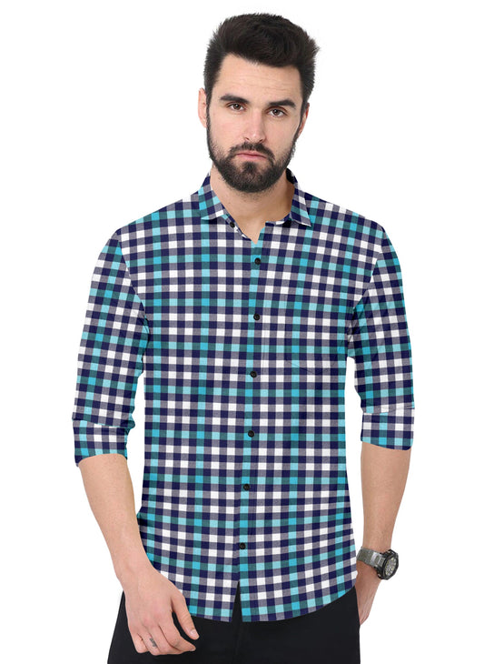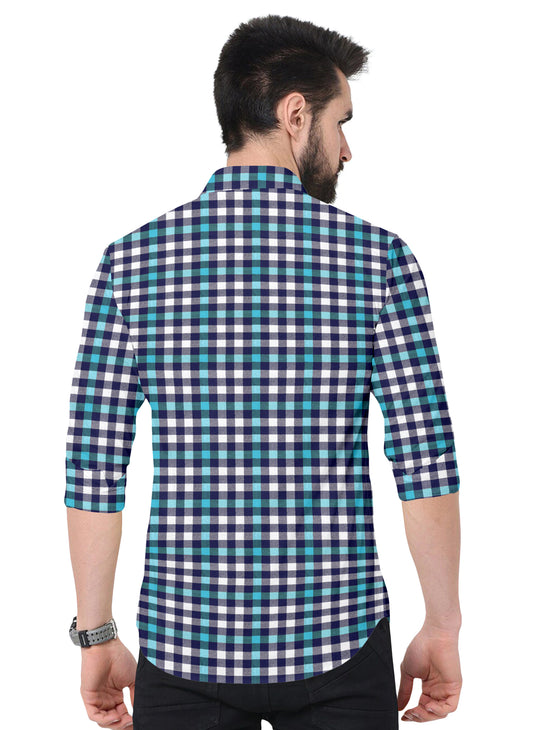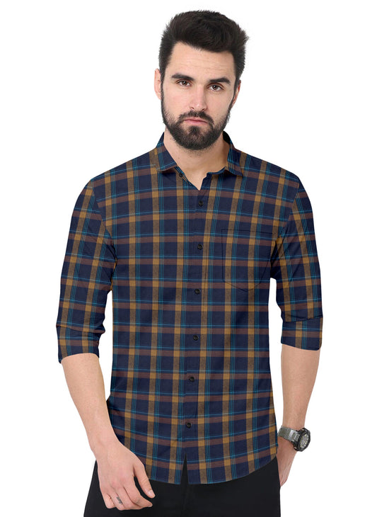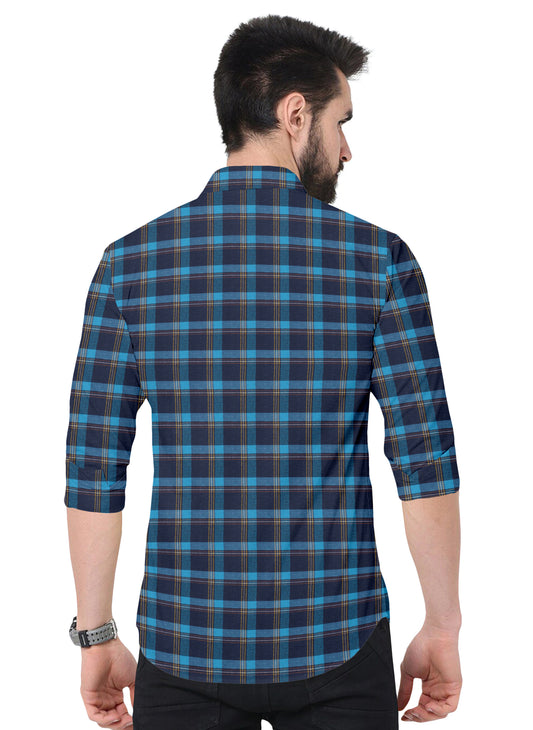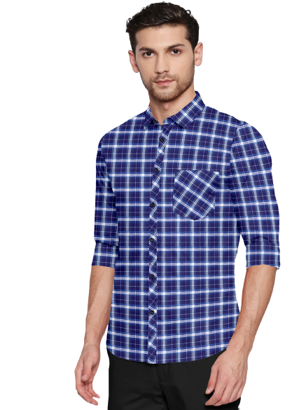 Men's Checkers Slim Fit Dark Blue Cotton Shirt