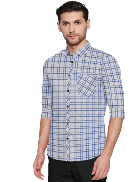 Men's Checkers Slim Fit Light Grey Cotton Shirt