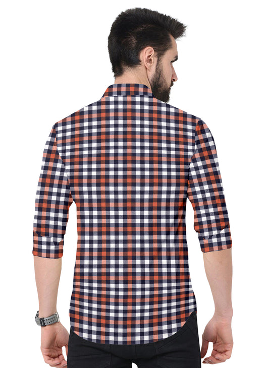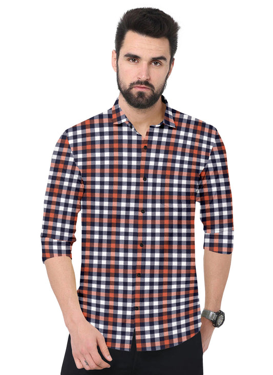 Men's Checkers Slim Fit Brown Cotton Shirt