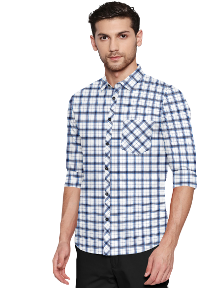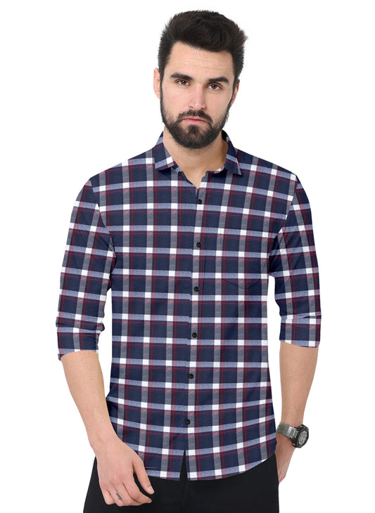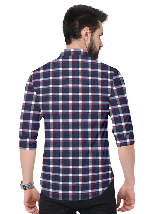 Men's Checkers Slim Fit Navy Blue Cotton Shirt