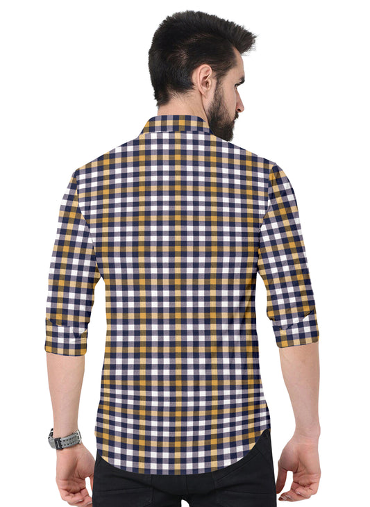 Men's Checkers Slim Fit Yellow Cotton Shirt