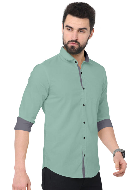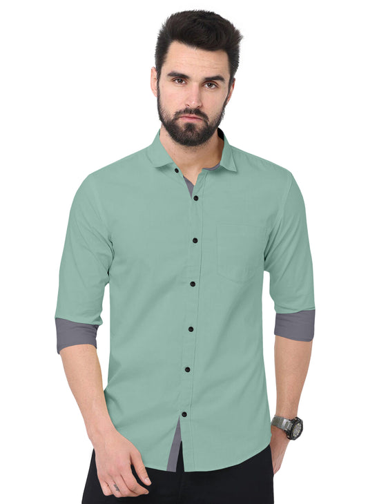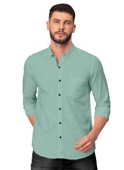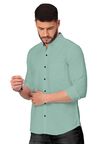 Men's Solid Plain Design Slim Fit Acqua Cotton Shirt