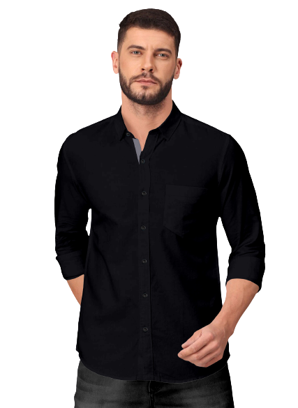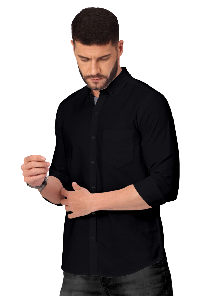 Men's Solid Plain Design Slim Fit Black Cotton Shirt