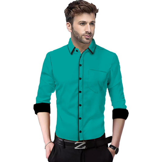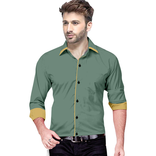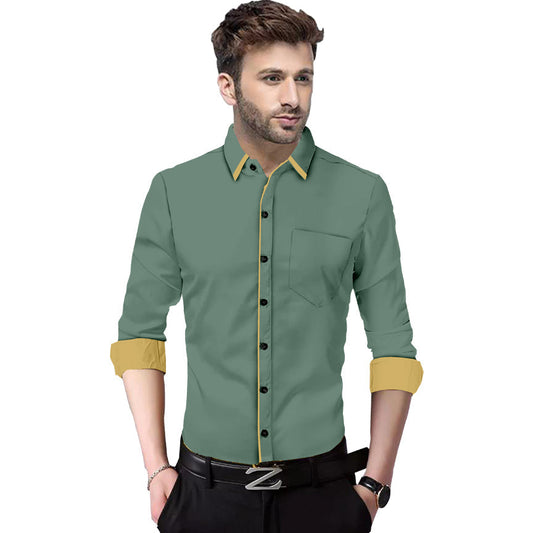 Men's Liner Design Slim Fit Dark Green Cotton Shirt
