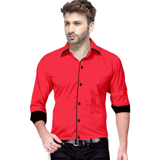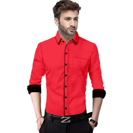 Men's Liner Design Slim Fit Dark Pink Cotton Shirt