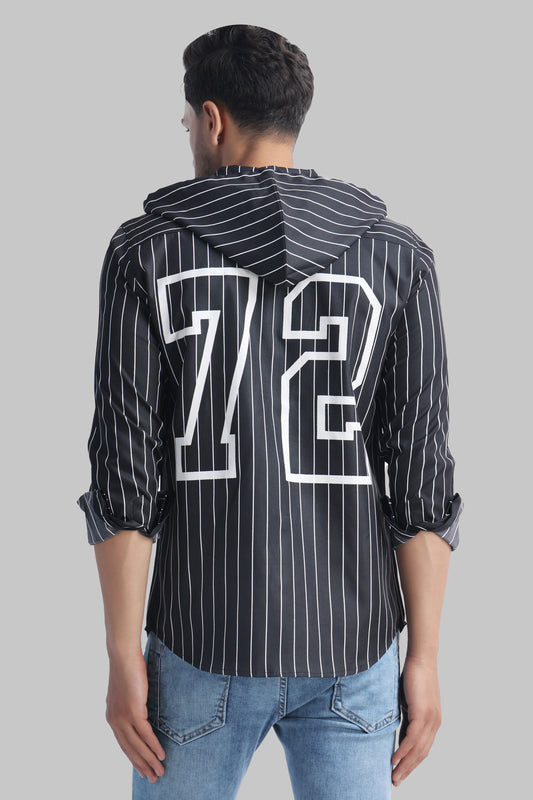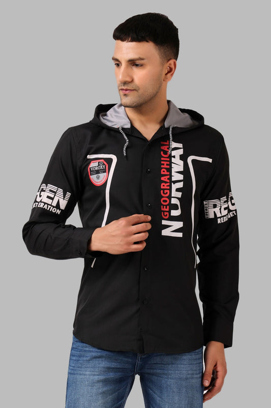 SUR-T Men's Regular Fit Printed Ribbed Collar Casual Black Classic Hoodie Shirt