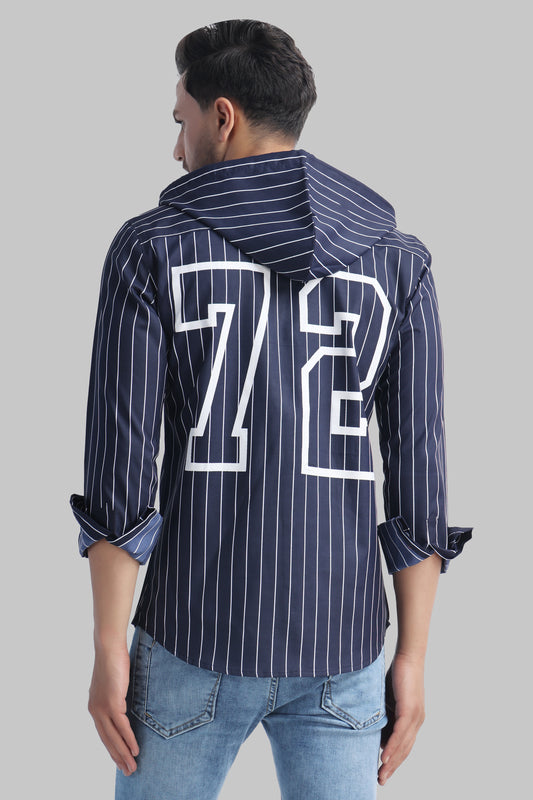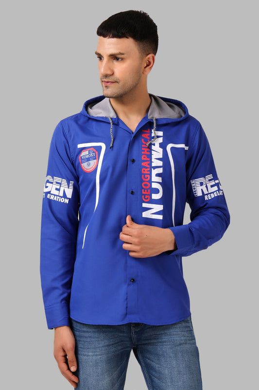 SUR-T Men's Regular Fit Printed Ribbed Collar Casual Royal Blue Classic Hoodie Shirt