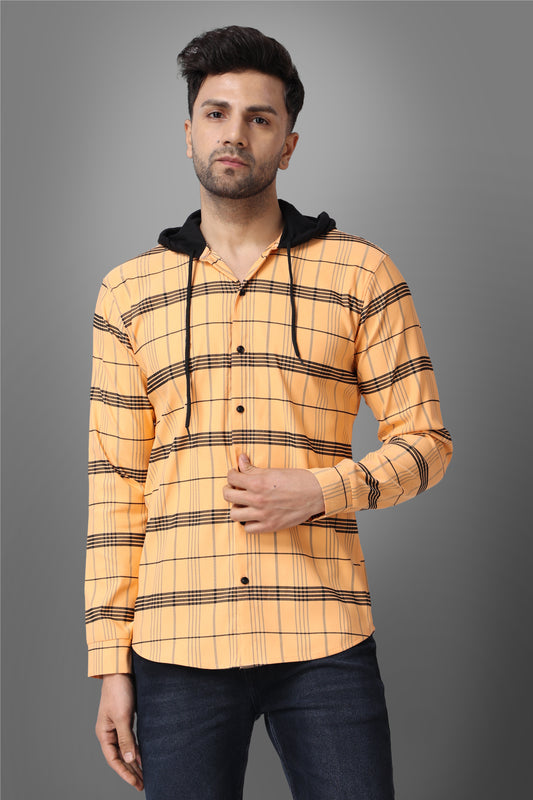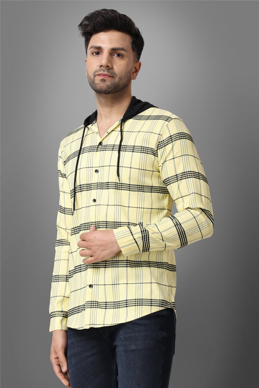SUR-T Men's Regular Fit Checkered Hood Collar Casual Yellow Classic Hoodie Shirt