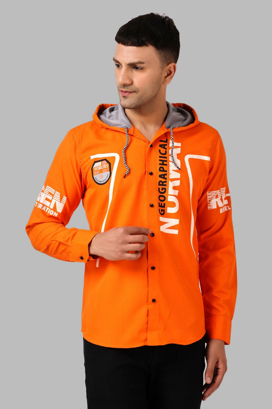 SUR-T Men's Regular Fit Printed Ribbed Collar Casual Orange Classic Hoodie Shirt