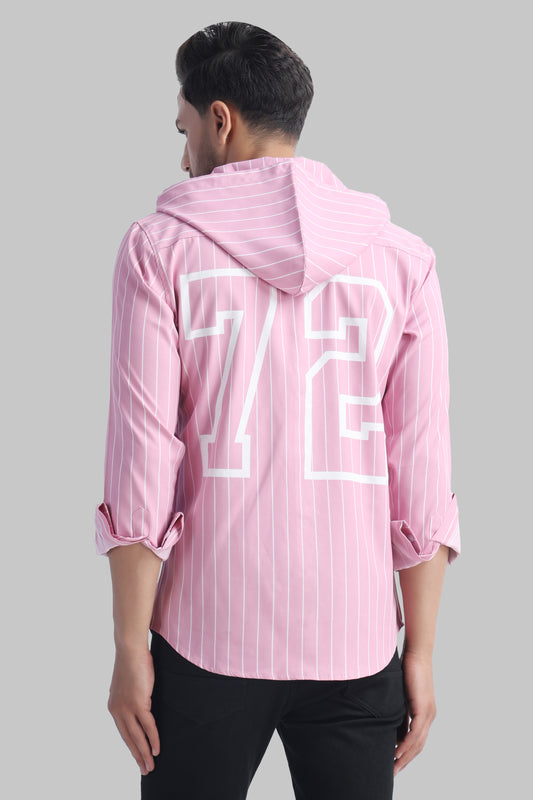 SUR-T Men's Regular Fit Striped Ribbed Collar Casual Pink Shirt