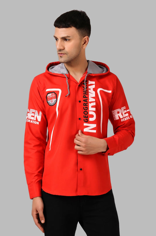 SUR-T Men's Regular Fit Printed Ribbed Collar Casual Red Classic Hoodie Shirt
