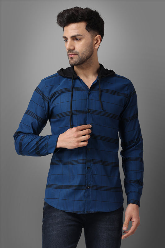 SUR-T Men's Regular Fit Checkered Hood Collar Casual Royal Blue Classic Hoodie Shirt