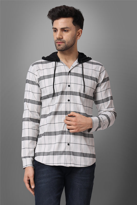 SUR-T Men's Regular Fit Checkered Hood Collar Casual Grey Classic Hoodie Shirt