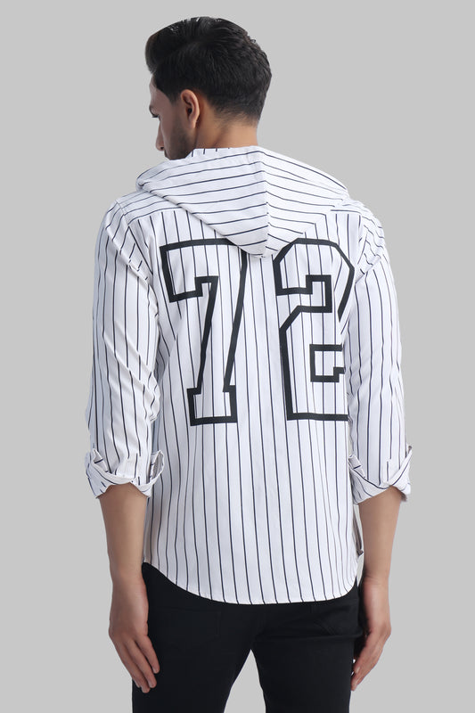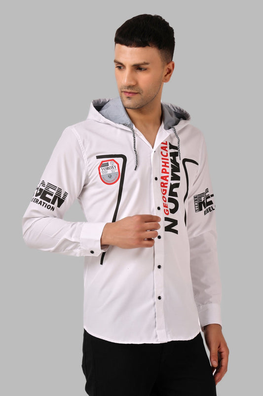 SUR-T Men's Regular Fit Printed Ribbed Collar Casual White Classic Hoodie Shirt