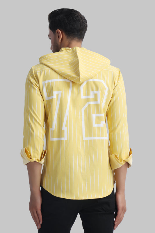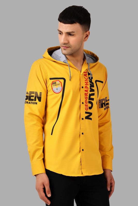SUR-T Men's Regular Fit Printed Ribbed Collar Casual Yellow Classic Hoodie Shirt