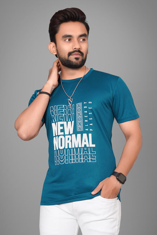 SUR-T Men Printed, Typography Round Neck Polyester Airforce Blue T-Shirt