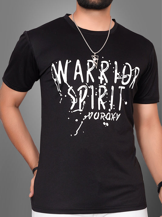SUR-T Men Printed, Typography Round Neck Polyester Black T-Shirt
