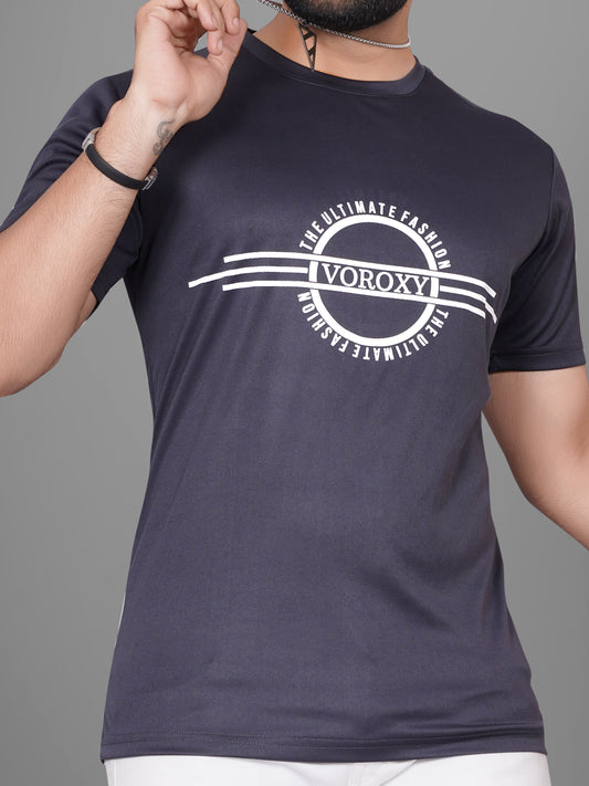 SUR-T Men Printed, Typography Round Neck Polyester Dark Grey T-Shirt