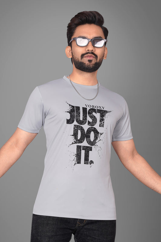 SUR-T Men Printed, Typography Round Neck Polyester Silver T-Shirt