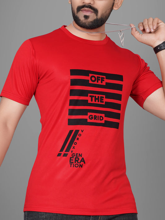 SUR-T Men Printed, Typography Round Neck Polyester Red T-Shirt