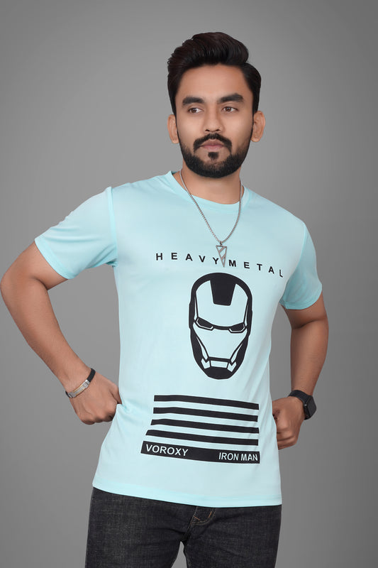 SUR-T Men Printed, Typography Round Neck Polyester SKY Blue T-Shirt