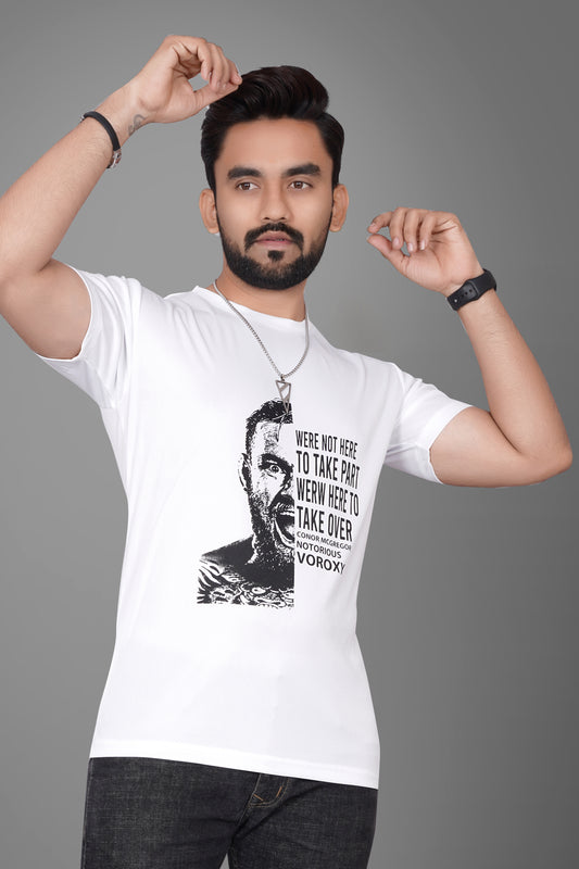 SUR-T Men Printed, Typography Round Neck Polyester White T-Shirt