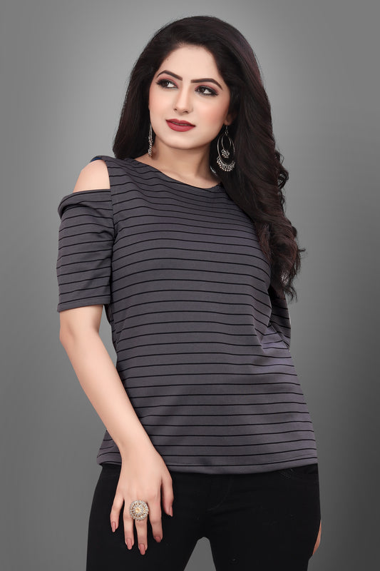 SUR-T Casual Half Sleeves Striped Women Dark Grey Top