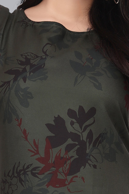 SUR-T Casual Sleeveless Florist Printed Women Dark Mehandi Green Top