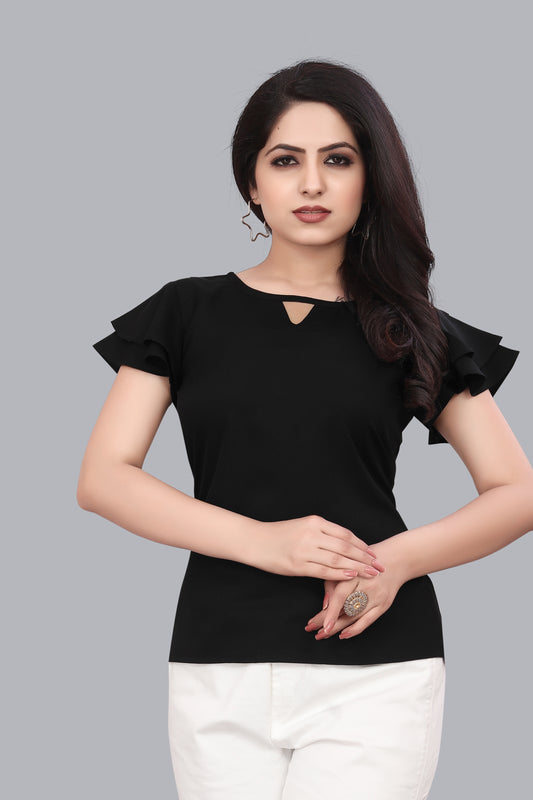 SUR-T Casual Regular Sleeves Solid Women Black Top