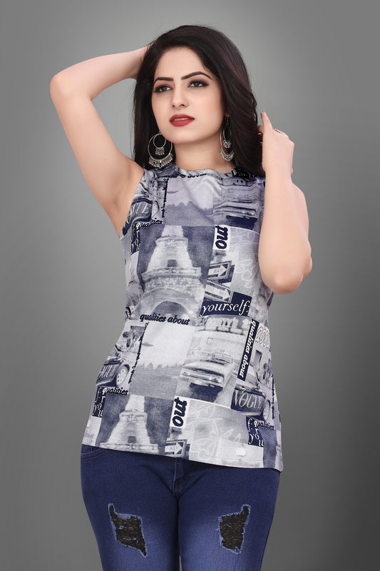SUR-T Casual Sleeveless Printed Women SKY Blue Top
