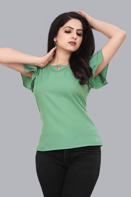 SUR-T Casual Regular Sleeves Solid Women Light Green Top