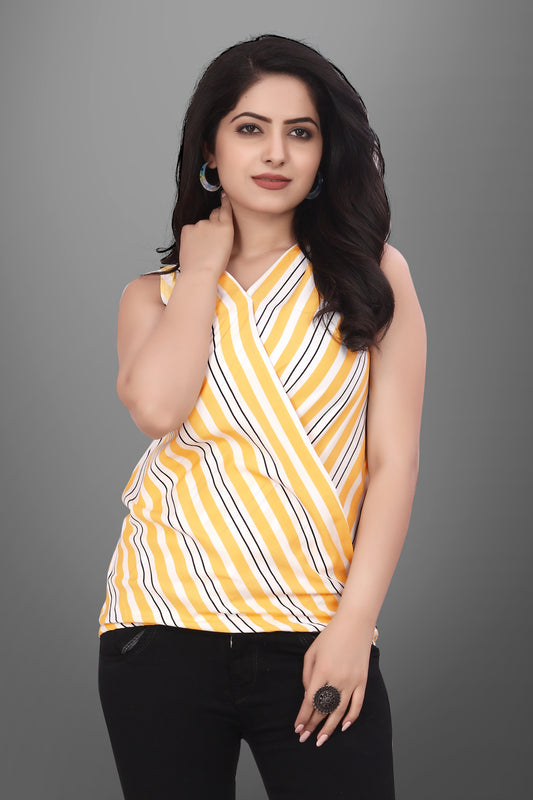 SUR-T Casual Sleeveless Leriya Striped Women Yellow Top