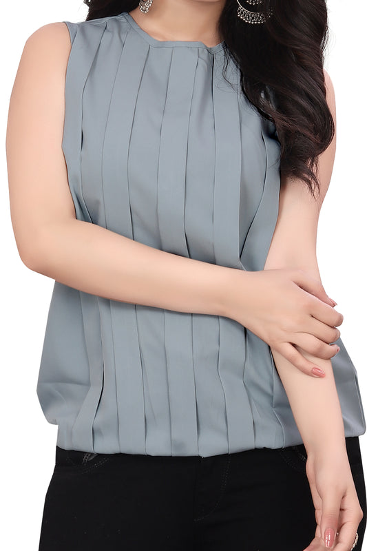 SUR-T Casual Sleeveless Striped Women Grey Top