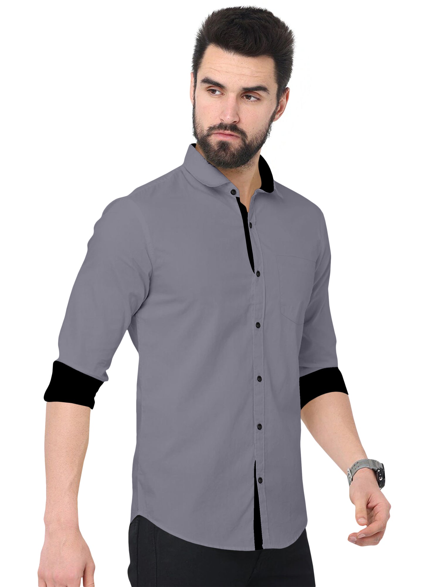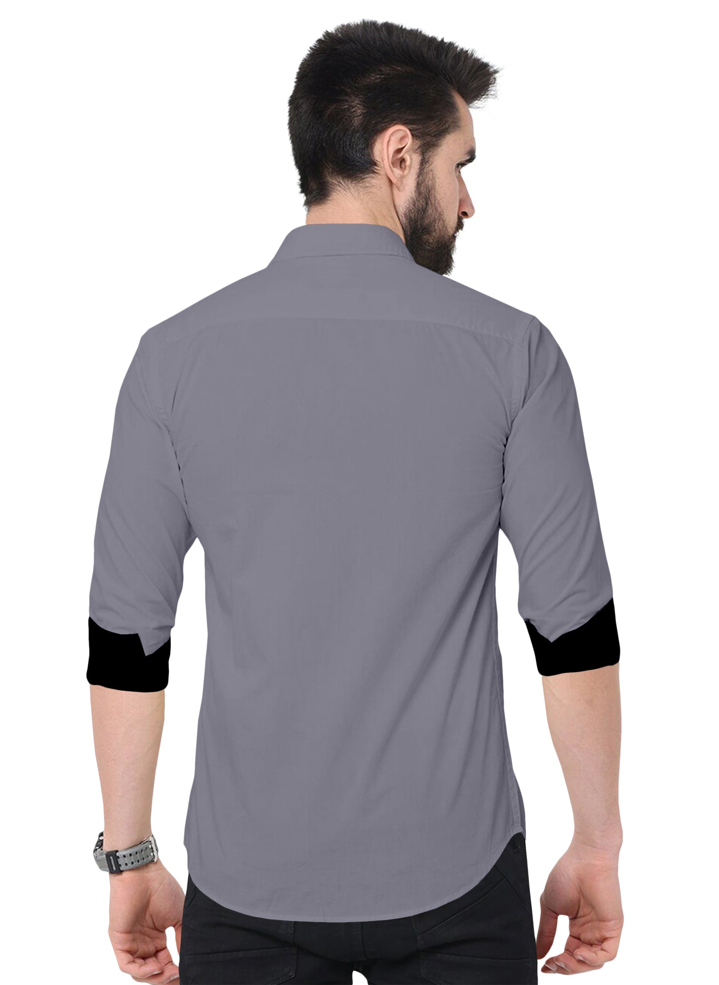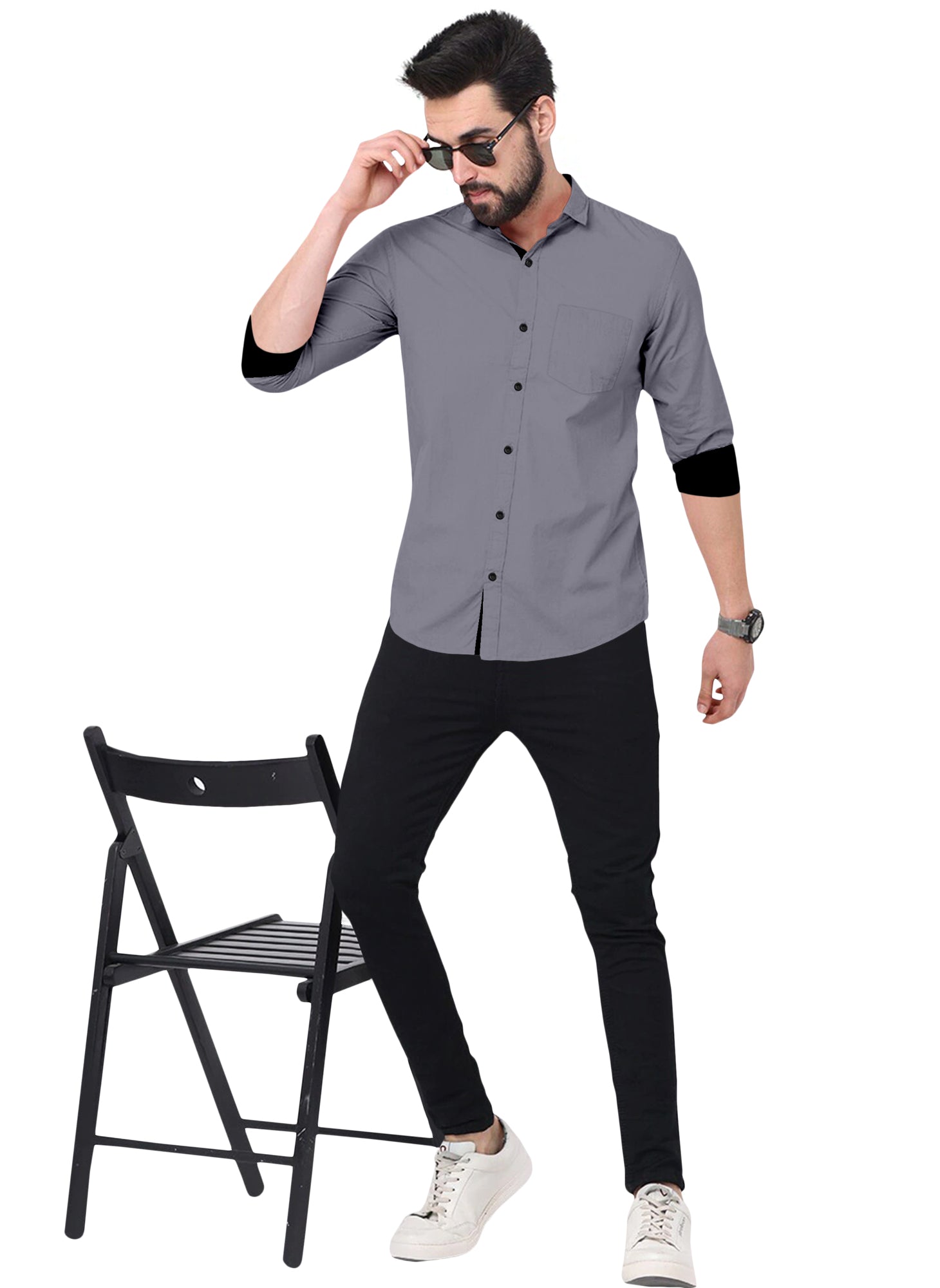 Men's Solid Plain Design Slim Fit Grey Cotton Shirt