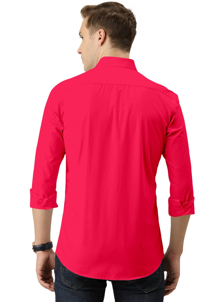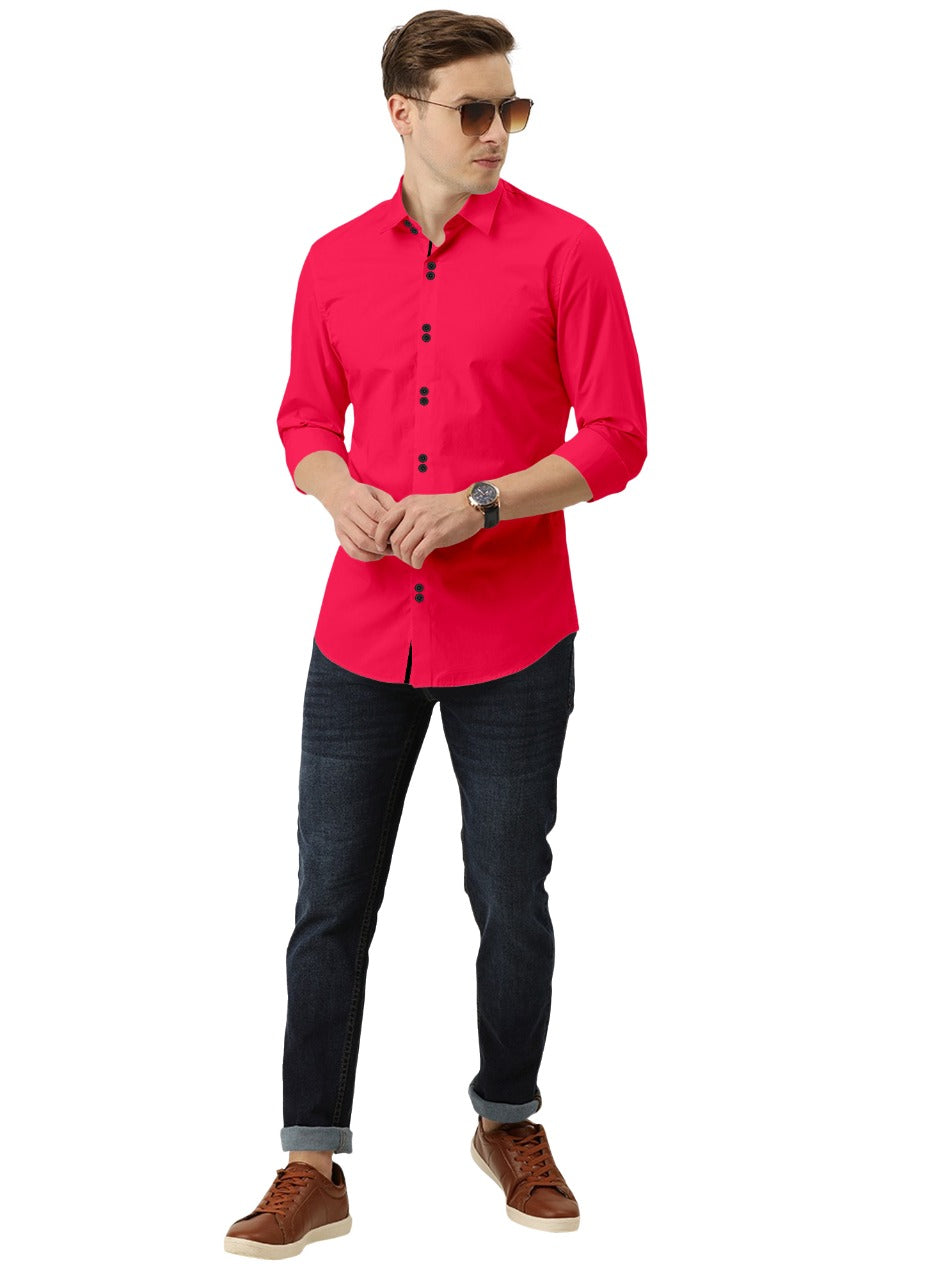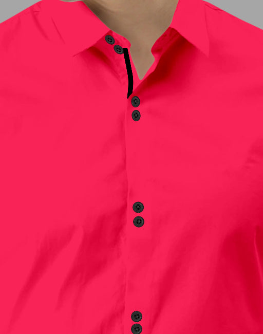 Men's Solid Slim Fit Cotton Double Button Dark Pink Shirt