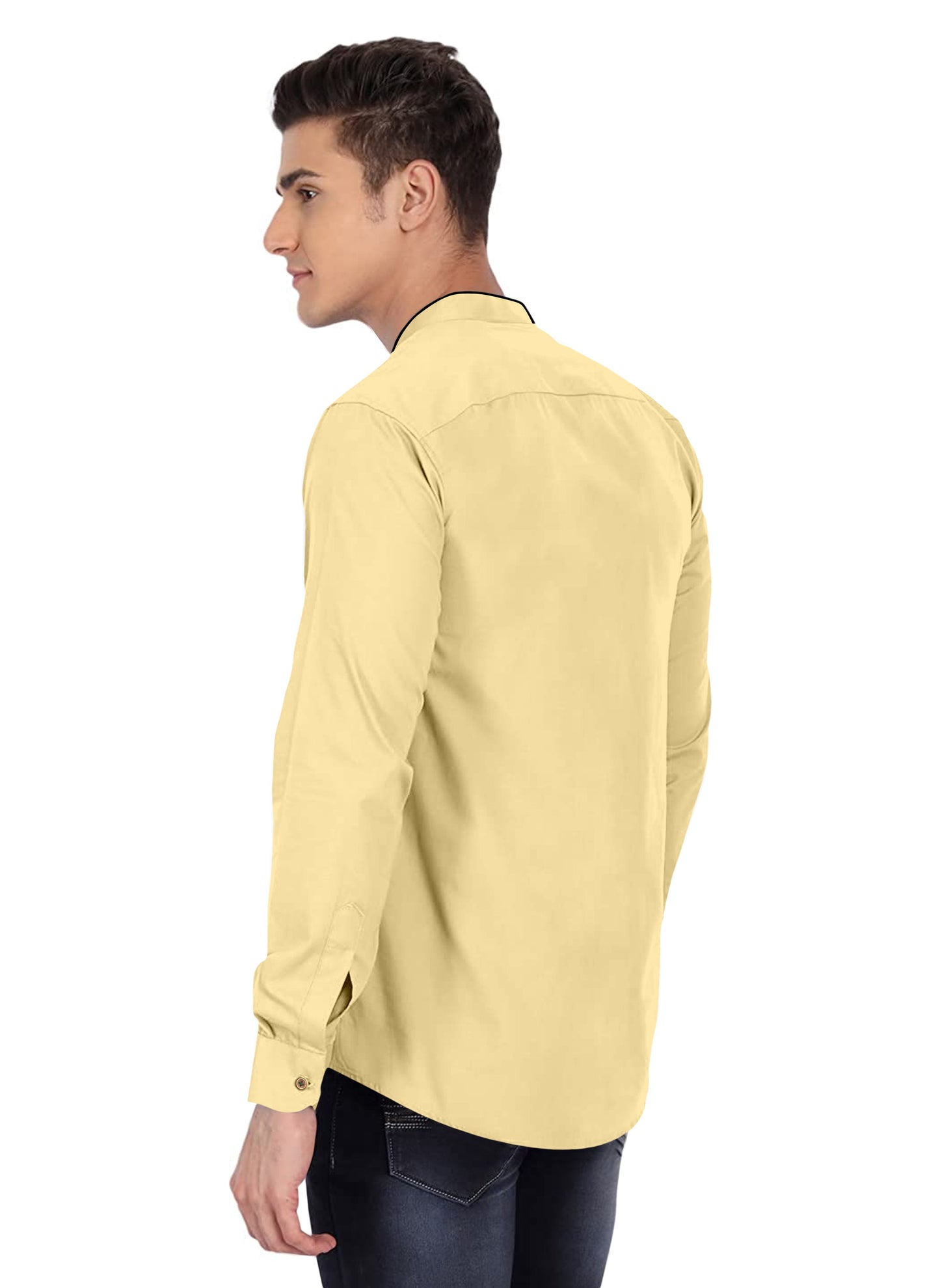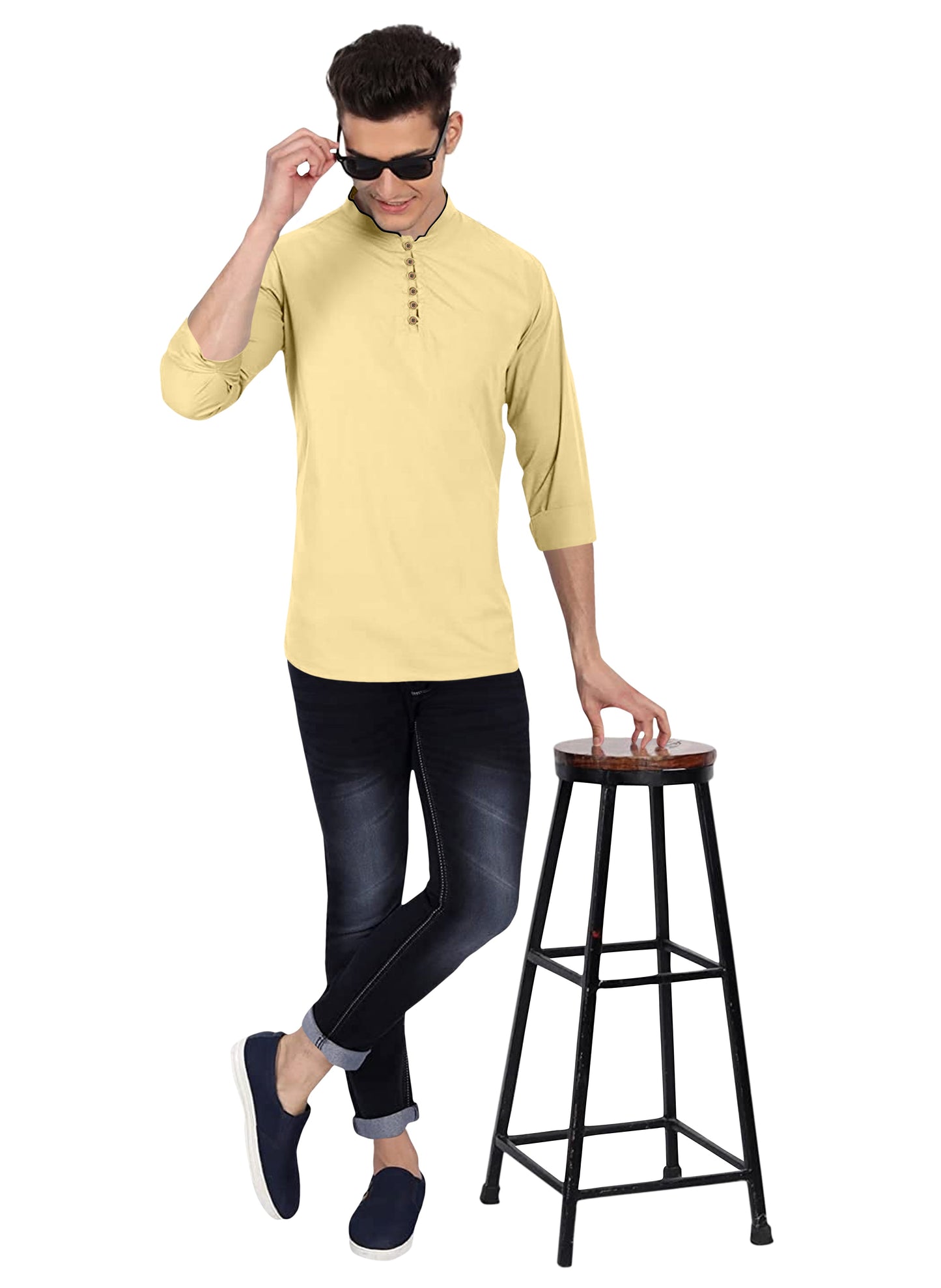Men's Solid Stylish Plain Design Slim Fit Beige Cotton Kurta