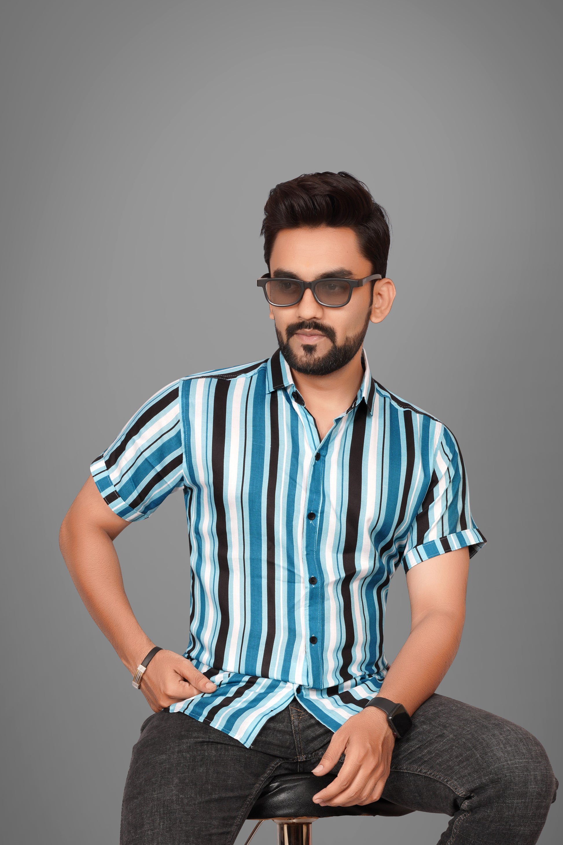 SUR-T Men Regular Fit Striped Spread Collar Casual Blue Shirt